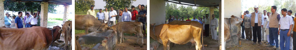 There are three Jersey cows and one calf at KVK, Thariaon, Fatehpur,Ours is the single KVK under jurisdiction of C.S. Azad Univ.&Tech, Kanpur having a well established and satisfactorily running Animal unit. It is serving the purpose of Method as well as Result demonstration of Jersy cross cows that are performing well under Eastern UP conditions. The farmers of the district Fatehpur and surrounding districts are taking due interest in Jersey cows. Green fodder cultivated at KVK farm and the by product of farm like wheat bhusa and rice straw are provided to the animals. In return the animal unit provides FYM for the farm and fresh dung for Vermicompost production.