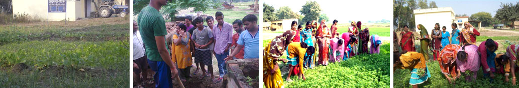We have developed one Nutritional Organic Kitchen garden at KVK, Thariaon, Fatehpur. It is established in an area of 180 m2 (15m x 12m). One bed is of 3m x 3m and thus total 20 beds are established. The produced is consumed at the KVK and by the farmers. Different vegetables are sown in different beds according to the season. Only organic manures produced in the Organic manure unit are used for health purposes to make it purely an Organic Kitchen Garden. The Home scientist of KVK trains the farm women of the district in production of organic Kitchen garden. About 20 women have developed nutritional Kitchen garden around their houses.