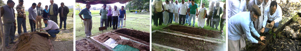 There is one Organic manure production unit at the centre which includes one vermicompost bed, one Nadep compost bed and two pakka above ground manure pits. We are producing about 10 qt of Vermicompost, 10 qt of Nadep compost and 20 qt of pit compost. Nadep compost and pit compost is used at the KVK farm where we produced breeder seeds. Vermicompost is used in nutritional kitchen garden developed at KVK centre. The farmers of the district, surrounding district and other state come, see and taking the inspiration, developed Vermicompost unit at their back yards. The women are having particular interest in vermicomposting and about 22 farm women have developed Vermicompost units in the district Fatehpur.